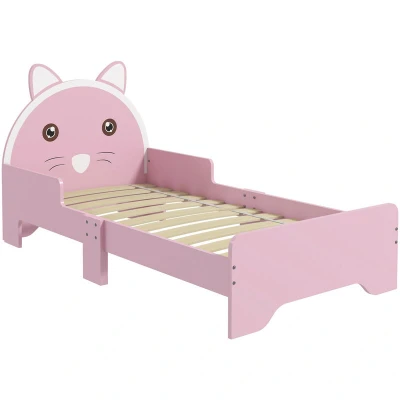 ZONEKIZ Toddler Bed Frame, Kids Cat Design Princess Bedroom Furniture with Guardrails, for 3 6 Years Old, 143L x 74W 72Hcm Pink