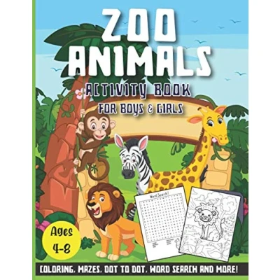 Zoo Animals Activity Book for Boys & Girls Ages 4 8: Books Kids with Coloring, Mazes, Dot to Dot, Word Search and more!