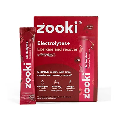 Zooki Electrolytes+ Exercise & Recover, Cherry Flavour 30 Sachets