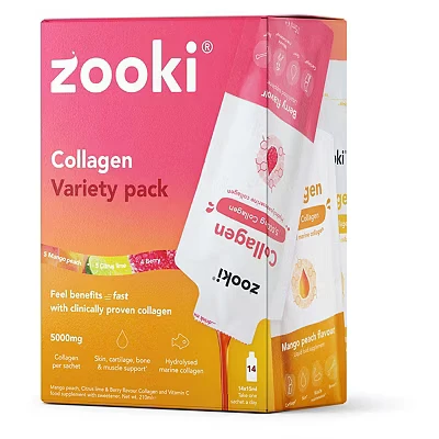 Zooki Marine Collagen 5,000mg, Variety Pack 14x15ml Liquid Sachets