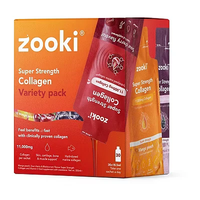 Zooki Super Strength Marine Collagen 11,000mg, Variety Pack 30x18.5ml Liquid Sachets