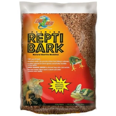 made from the bark of fir trees The perfect substrate for humidity loving reptiles due to its ability to absorb moisture and then release it into the terrarium the smaller chips provide better moisture retention while preventing live food from hiding in your substrate Naturally decorative, Repti Bark provides your terrarium with that tropical rainforest look Repti Bark is washable and re-useable