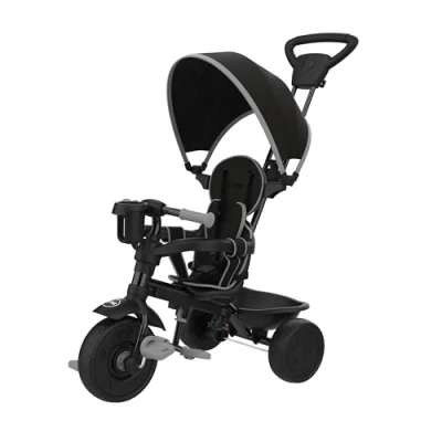 4-IN-1 ADAPTABILITY: The TP Toys Zoomee 4 in 1 Deluxe Trike grows with your child from 10 to 36 months, transitioning from a parent-assisted ride to an independent trike, supporting early development and independence. PARENTAL CONTROL HANDLE: Featuring an easy-to-steer, removable parental control handle for full control over steering. Children can rest their feet on the foldable footrest or practice pedaling safely. SAFETY & COMFORT: Stroller certified and equipped with a 5-point safety belt and removable safety bar for secure rides. Rubber, shock-resistant wheels ensure a smooth ride on any surface, while soft touch handlebars provide a comfortable grip. VERSATILE STAGES: Stage 1: At 10+ months, babies use the footrest and high-back support. Stage 2: At 18+ months, parents push and control the trike. Stage 3: At 24+ months, it becomes a training trike for pedaling practice. Stage 4: At 30+ months, the parent handle is removed for independent riding. PREMIUM DESIGN & STORAGE: The Grey Storm Trike boasts a stylish grey and black design with a retractable UV sun canopy, premium padded seat, secret storage compartment, and bottle holder, combining luxury and functionality., Manufacturer: Mookie