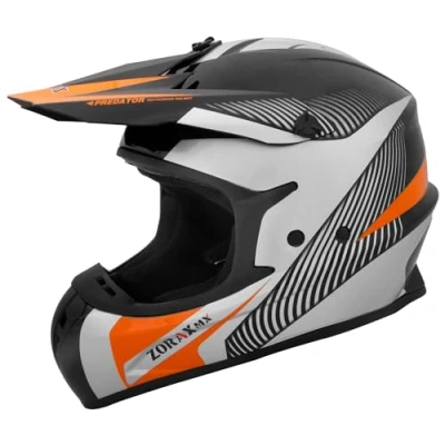 Zorax Black/Silver/Orange L (59 60cm) ZOR X305 Dual Sport Motorbike Motocross Helmet ECE 2206 Approved Dirt Bike MX Crash