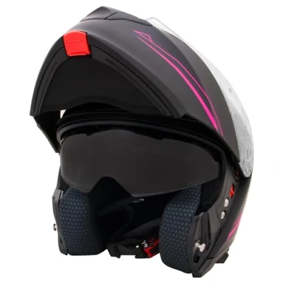 Zorax Matt Black/Pink S (55 56cm) ZOR 838 Double Visor Modular Flip up front Motorcycle Motorbike Helmet ECE 2206 Approved