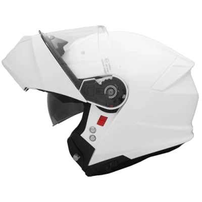 ECER 22.06 approved for UK on road legal Lightweight ABS shell with shock-absorbing multi-density EPS. Fitted with Outer Clear Visor & Inner drop dow sun visor;Single button unlock flip-up operation for easy use Adjustable and convenient chin strap (quick release strap) with comfort spong pad protection Breathable padding and removable, washable lining for maximum comfort. Adjustable ventilation points for a cool and comfortable ride.