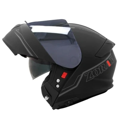 Zorax ZOR 838 Matt Black/Silver XXL (63 64cm) Motorbike Helmet + Extra Dark Smoke Visor Modular Flip up Front Motorcycle