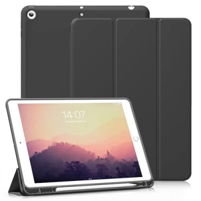 Designed specifically for iPad 2018/2017(iPad 6th/5th generation),Model:A1893/A1954;A1822/A1823 Soft TPU back shell protect your iPad 9.7 from shocks, drops and impacts.Soft microfiber lining with PU leather exterior, prevent your ipad from scratched. Tri-fold stand ergonomic angle. Convenient stand position for watching movie or typing Built-in pencil slot provides a secure and convenient place to store your Apple Pencil,The special slot is designed to grab your Apple pencil firmly with cap holder and nib cover together. It's also easy to push Apple pencil out effortlessly through the holes on the side. (Apple Pencil is NOT included) Automatically wakes or puts your device to sleep when the lid is opened and closed. 0.1S quick response to auto sleep/wake your devicefor for power reduction Precise cutouts allow full access to all features (buttons, speakers, cameras)