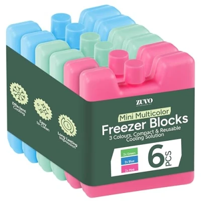 Zuvo Mini Freezer Blocks Pack of 6 Reusable Ice Packs for Cool Bags, Lunch Boxes & Long Lasting Food Drink Leakproof, Lightweight, Durable Portable