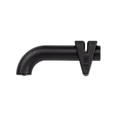 Easy to use knife sharpener: even non-professionals can easily resharpen blunt blades with it Preset sharpening angle: the ceramic discs in the knife sharpener are set so that you just need to pull the knife through - the blade is sharpened and cannot be damaged Thanks to the curved plastic handle, the knife sharpener sits firmly in the hand for safe sharpening The knife sharpener is suitable for all knives with a smooth blade, except Asian knives Box contents: 1x Zwilling knife sharpener, Twinsharp, black, item dimensions: 17 x 6.5 x 4 cm, weight: 93 g, material: plastic with stainless steel and ceramic discs, 1031078, Weight: 0.20502990366 Pounds, Manufacturer: Zwilling