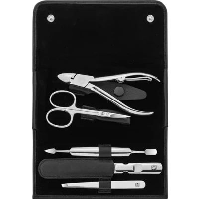 ZWILLING Classic Inox Calf Leather Manicure Set with Snap Fastener, Black, 5 Pcs