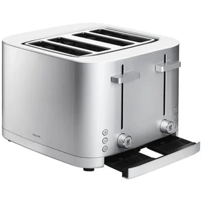 General description This Zwilling Enfinigy Toaster features four short slots and automatically adjusts the toasting duration for consistent browning, even after multiple uses. It is designed with individual adjustments for the left and right slots and includes three automatic programs: thaw, warm, and bagel. The toaster also has a soft-lift feature for gently lifting slices and a safety mechanism with automatic shut-off to prevent burnt toast. Technical specifications Four short slots Eight separate heating elements for even browning