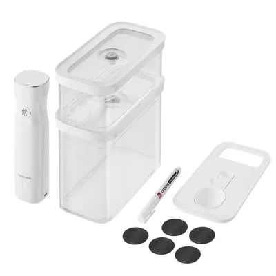 Transform your kitchen organization and food storage with the ZWILLING FRESH and SAVE CUBE Vacuum Starter Set in Transparent White. This innovative 5-piece set redefines how you store and manage your food, ensuring freshness and style while maximizing your kitchen space.
