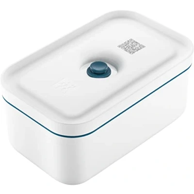 THE VACUUM CONCEPT: This FRESH & SAVE vacuum box ensures that foodstuff can stay fresh up to 5 times longer when compared to conventional storage and the flavors as well as nutrients in them are preserved. This not only saves time and money, but also prevents foodstuff waste. FRESHNESS IN VACUUM: Simply seal the vacuum container with the compatible FRESH & SAVE vacuum pumps - and in just a matter of seconds. The vacuum sealer stops automatically as soon as sufficient air has escaped. VACUUM BOXES: The shatterproof FRESH & SAVE vacuum boxes, which are made of BPA-free plastic, are real all-rounders: Irrespective of whether in the microwave, freezer or fridge, the lightweight storage boxes will never let you down and are also dishwasher safe. 2IN1 LUNCHBOX for at home and when on the go: Practical, easy to remove divider for separating two different types of foodstuff. The lunch box provides an optimal height for sandwiches, cold cuts and raw-food finger foods. SMART MEAL-PREPPING: Every organiser box has a QR code assigned on its lid: Utilising the intelligent ZWILLING app means that freshness status of all prepared dishes can be conveniently tracked via smartphone.