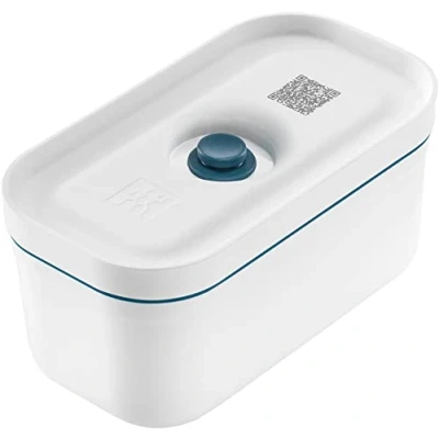 THE VACUUM CONCEPT: This FRESH & SAVE vacuum box ensures that foodstuff can stay fresh up to 5 times longer when compared to conventional storage and the flavors as well as nutrients in them are preserved. This not only saves time and money, but also prevents foodstuff waste. FRESHNESS IN VACUUM: Simply seal the vacuum container with the compatible FRESH & SAVE vacuum pumps - and in just a matter of seconds. The vacuum sealer stops automatically as soon as sufficient air has escaped. VACUUM BOXES: The shatterproof FRESH & SAVE vacuum boxes, which are made of BPA-free plastic, are real all-rounders: Irrespective of whether in the microwave, freezer or fridge, the lightweight storage boxes will never let you down and are also dishwasher safe. SMART MEAL-PREPPING: Every organiser box has a QR code assigned on its lid: Utilising the intelligent ZWILLING app means that freshness status of all prepared dishes can be conveniently tracked via smartphone. DELIVERY PACKAGE: 1x ZWILLING vacuum lunch box, plastic, Size S (0.5 L, 16 x 9 x 8 cm), white La Mer, material: BPA-free plastic (cover & container), silicone (valve & seal), 1009484.