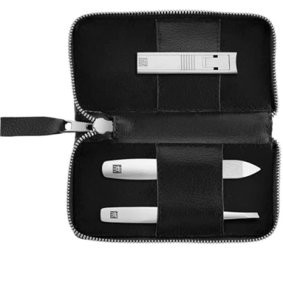 SUSTAINABLE & ELEGANT – Vegan, grey apple leather case with zip fastener & soft velvet lining – stylish & eco-friendly. PRACTICAL EQUIPMENT – Nail & cuticle scissors, glass nail file, cuticle pusher/cleaner – everything for well-groomed hands & feet. Particularly durable glass DURABLE & HYGIENIC – Rust-free, satin-matt stainless steel & fine glass – easy to care for & permanently sharp. COMPACT & PRECISE – 3 professional instruments for perfect manicure & pedicure – quick results like in the studio.