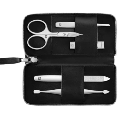 ZWILLING Manicure Pedicure Set 5 Piece Nail Clippers Vegan Apple Leather Case Black