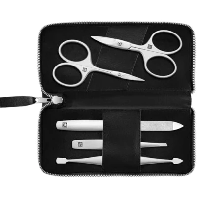 ZWILLING Manicure Pedicure Set 5 Piece Nail Scissors & File, Vegan Apple Leather Case, Black