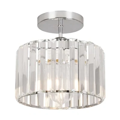 ZYDTRIP Crystal Ceiling Light Fixture Semi Flush Mount Lamp Modern Silver Chandelier for Living Room Hallway Dining Kitchen