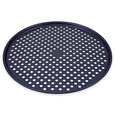 Zyliss Large Pizza Tray for Oven, Double Layer Non Stick Coating, Perforated Base 36cm/14in, PFAS Free Durable Carbon Steel, Dark Blue, Pan, Dishwasher Safe