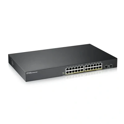 Zyxel 24 Port Gigabit PoE Switch Smart Managed Rackmount 24x PoE+ Ports with 170 Watt Budget and 2x SFP VLAN, IGMP, QoS [GS1900 24HP]