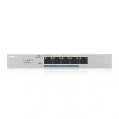 Zyxel 5 Port Gigabit Web Managed PoE+ Switch with 60 Watt Budget, limited lifetime protection, UK Plug [GS1200 5HPv2]